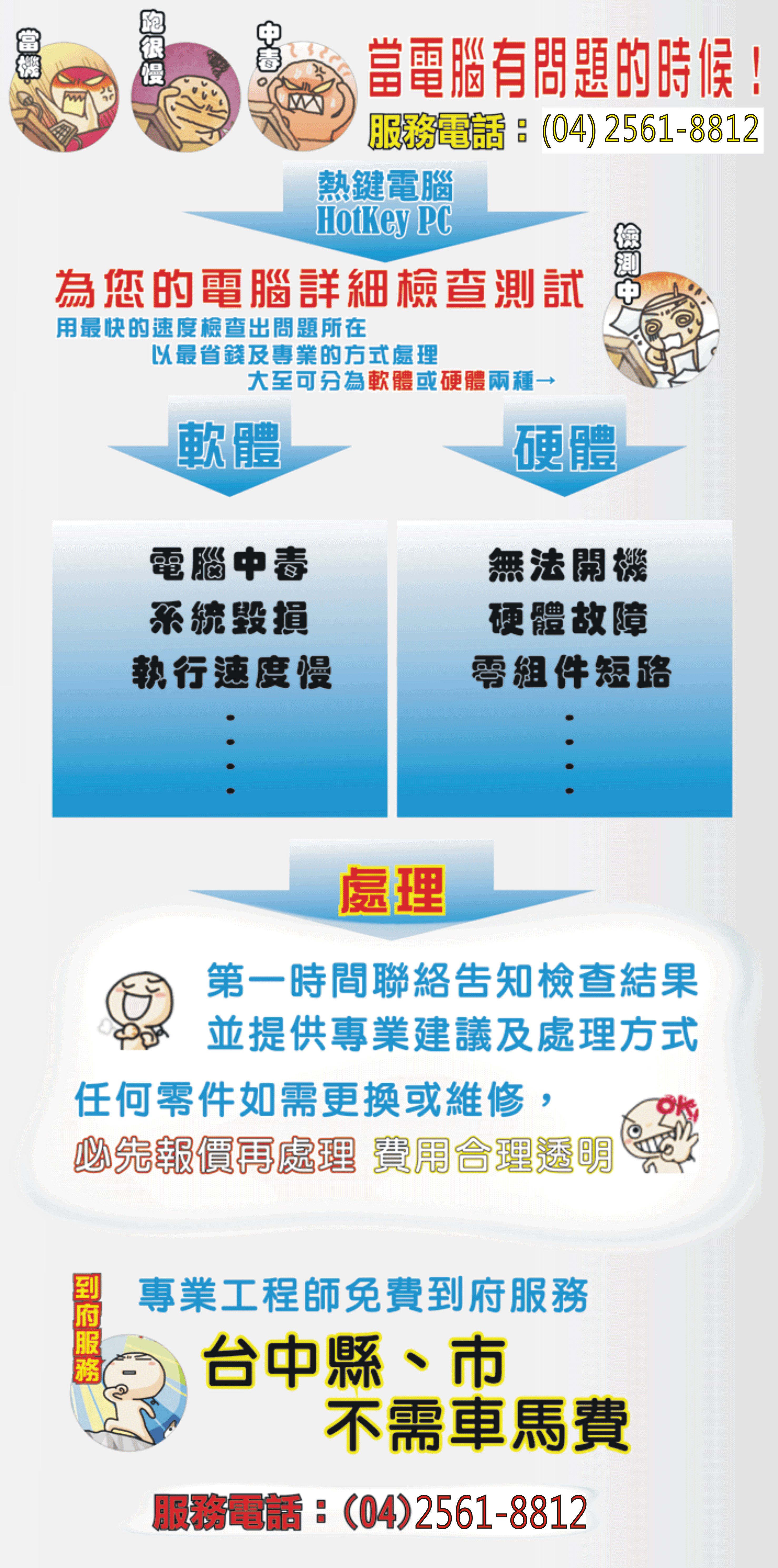 熱鍵電腦 04-25618812 台中市神岡區中山路1365巷8號